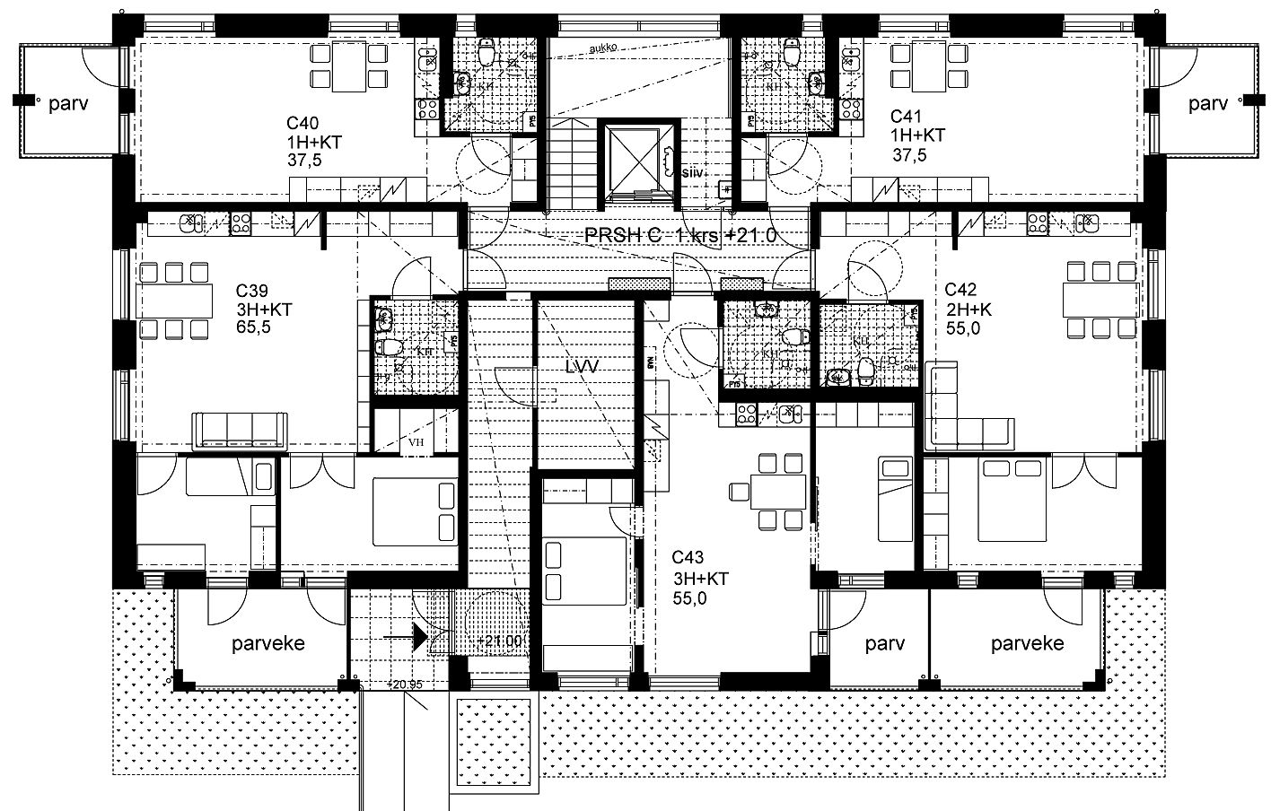 | Laajuus | 3600 k-m2, bruttoala 4853 br-m2 + autohalli 130 br-m2 61 asuntoa, keskipinta-ala 50 m2 |