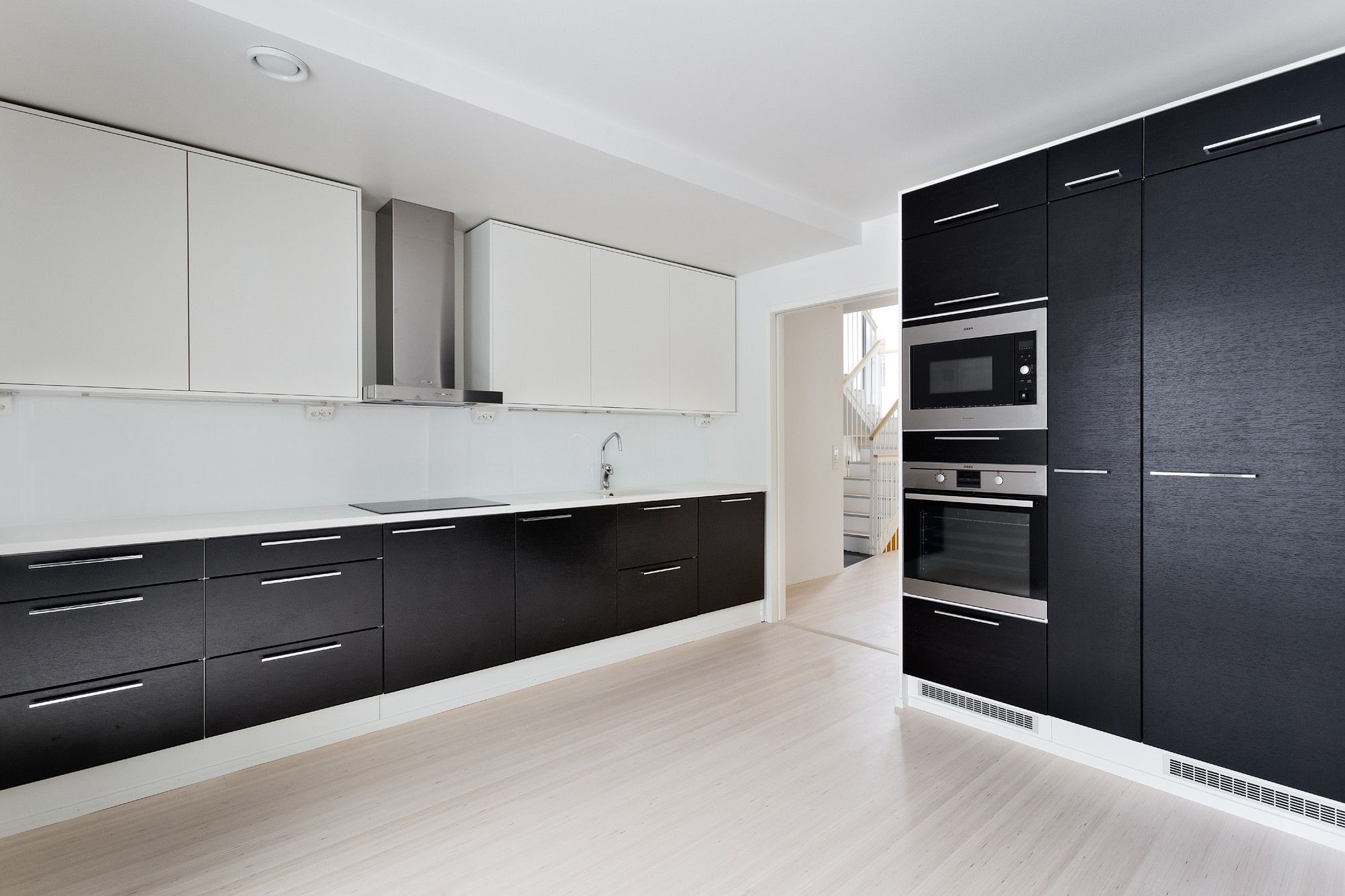 Every apartment has small yard and a roof terrace. Kitchen and utility room are connected to the yard and the sauna to roof terrace. Located on the street side is the Main entrance, along with a direct entrance to the garage in the cellar.