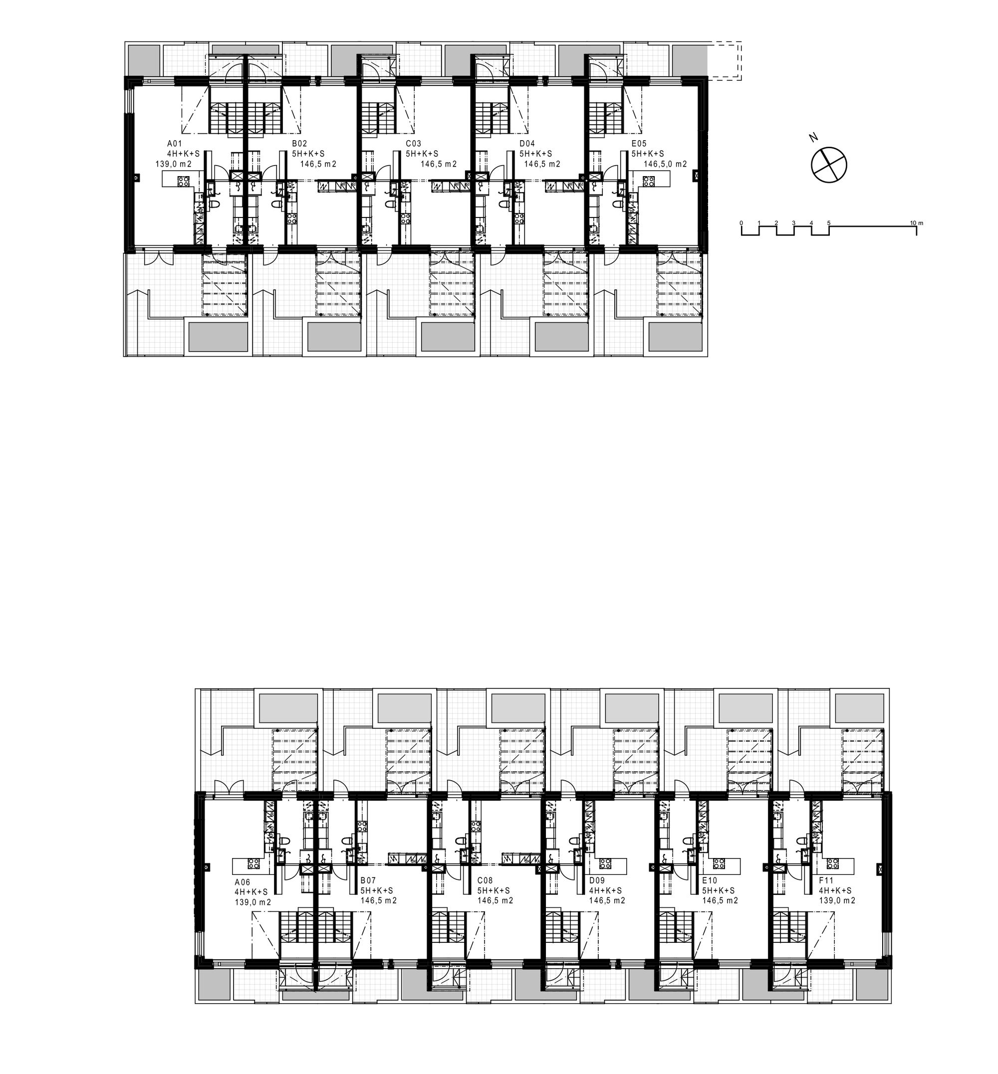 The rented apartments use a communal building type with social emphasis, including the possibility to combine adjacent flats in the future. The family apartments use a building type that is universally usable without structural alterations. For the demanding customer there are the Town Houses, which provide an urban location combined with individuality from layout to facades.