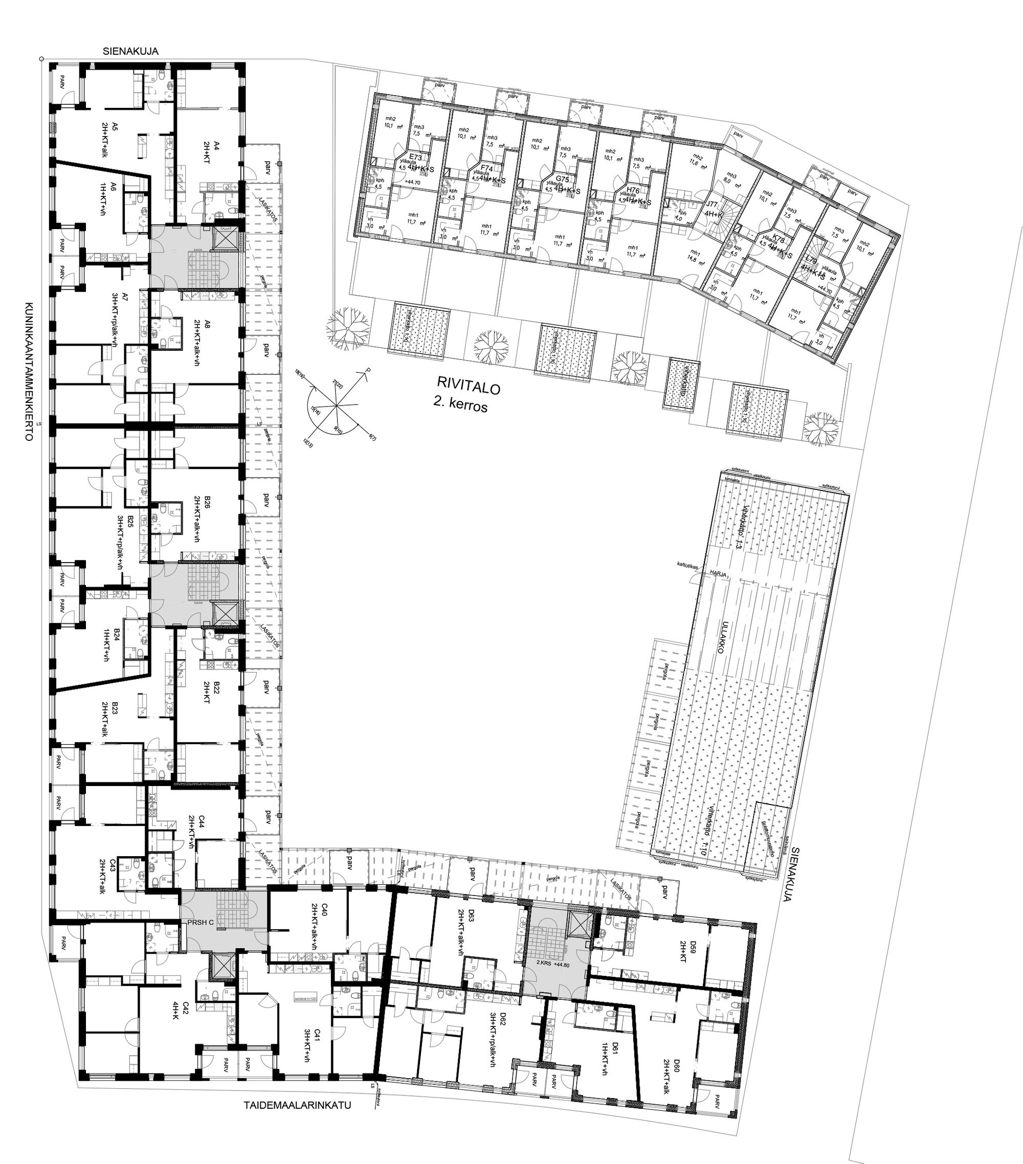 | Laajuus | 78 asuntoa + liiketila, 5200 k-m2, 6523 br-m2 |