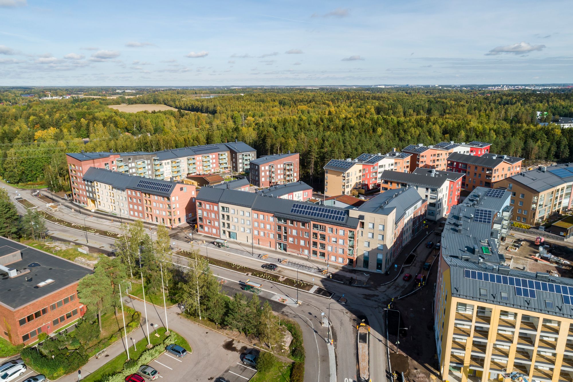 Kohteessa on panostettu merkittävästi hankkeiden ympäristöystävällisyyteen ja hulevesiin. Korttelipihoilla on vehreät sadevesipuutarhat ja metsäkasvillisuutta. Matalien rakennusten ja katosten katot ovat viherkattoja, katoilla on aurinko-paneeleja.
