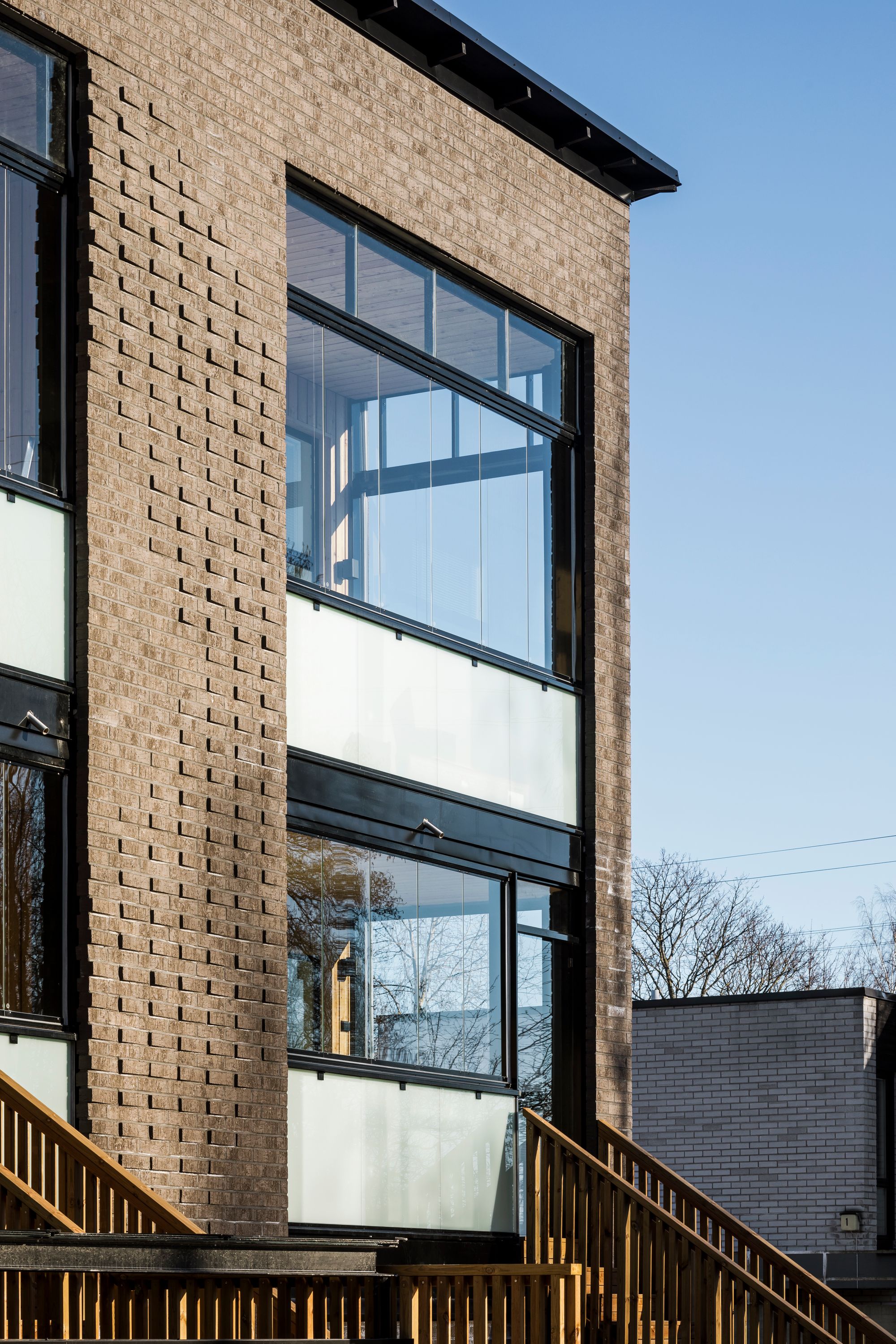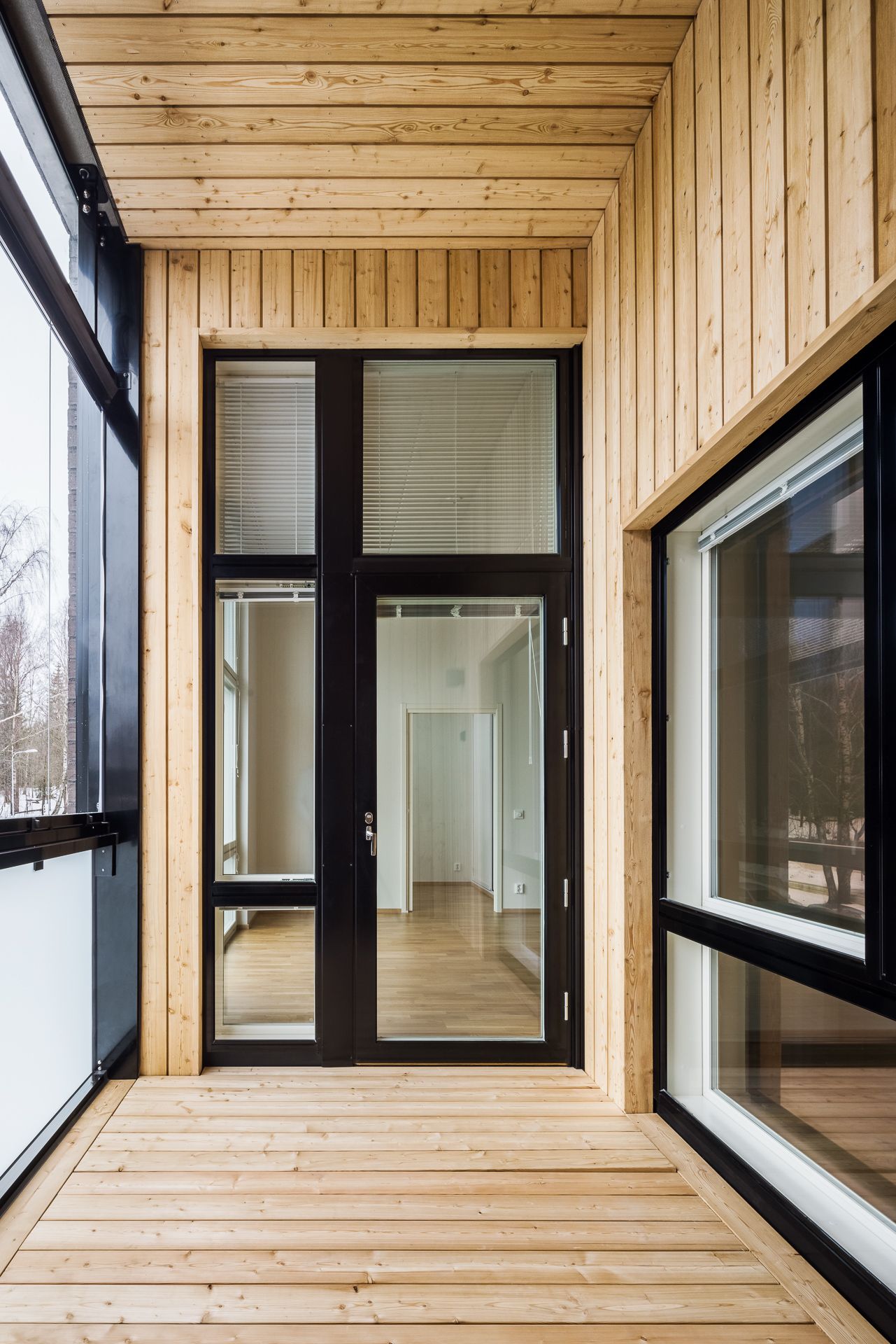 Julkisivut on tehty mustasta poltetusta tiilestä ja lehtikuusesta. Asunnoissa on pyritty valoisuuteen ja avaruuteen. Kaikki asuintilojen ikkunat korkeita ja lähtevät lattian tasosta. Toisen kerroksen asunnoilla on korkeammat asuintilat vinon katon ansiosta, ensimmäisen kerroksen asunnoilla on puolestaan pienet asuntopihat. Pihalla on asukkaiden yhteinen kesäkeittiö ja oleskelutilat.