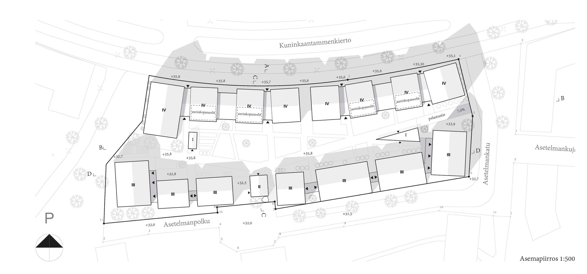 Helsingin Asuntotuotantotoimiston SR-laatukilpailun alue rajautuu Kuninkaantammenkierron ja Asetelmankadun väliselle etelään viettävälle rinteelle. Länsipuolelta tontti rajautuu puistoon. Ehdotuksessa tontille on sijoitettu neljäkerroksiset kerrostalot ja kolmekerroksiset pienkerrostalot joiden väliin jäävällä pihakannella on suojaisat ulko-oleskelutilat.