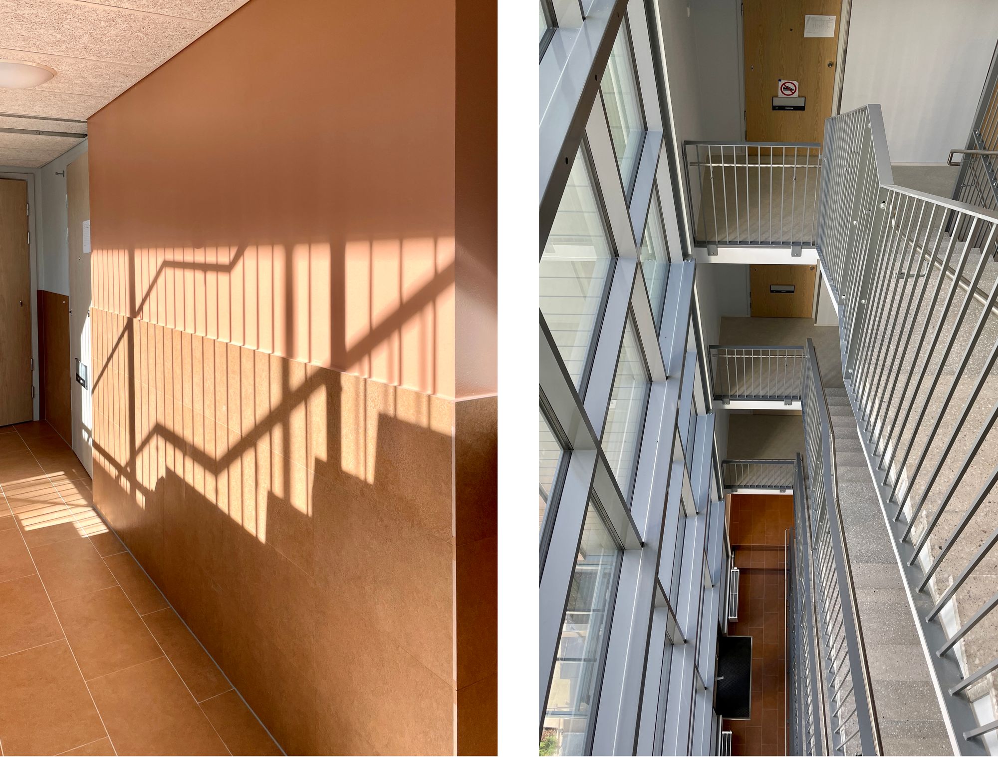 Kaavan määräämän rakennusmassan ollessa pitkänomainen avainratkaisuksi muodostui venytetty porrashuone suorine portaineen, jolla on vältetty pimeät keskikäytävät.