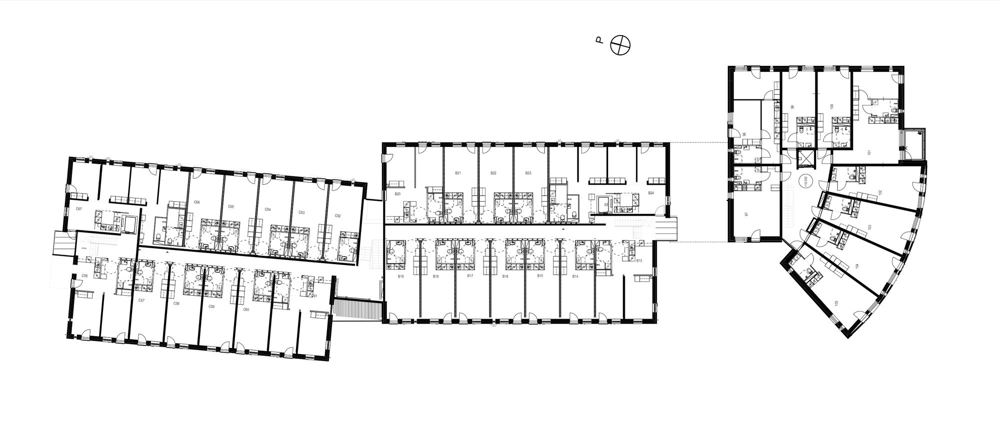 Rakennuksessa on yksiöitä, kahden opiskelijan soluhuoneistoja sekä ryhmäasumishuoneistoja ja opiskelijoiden yhteistiloja. Yhteensä 114 asuntoa.