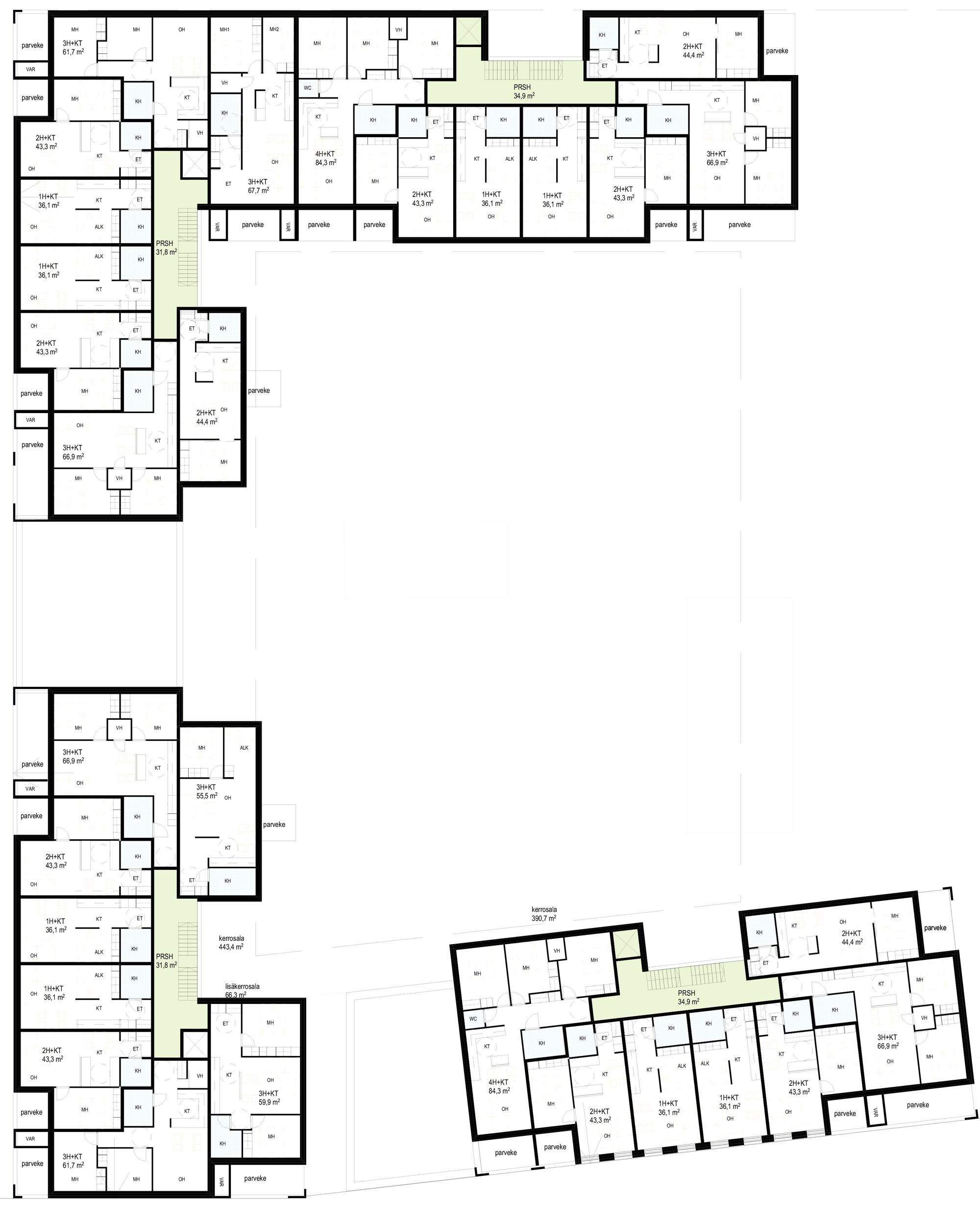 | Laajuus | 140 asuntoa, 7455 as-m², 10090 brm² |