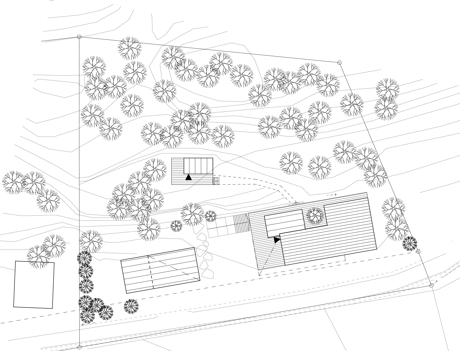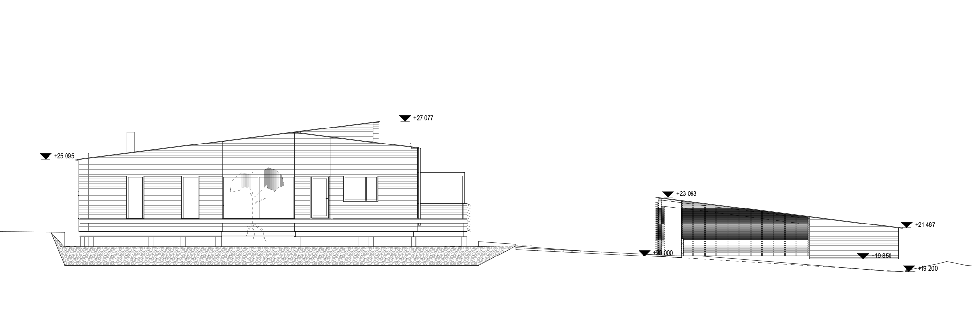 Lähtökohtana oli asiakkaan vahva näkemys ja luonnokset metsäisessä rinteessä leijuvasta talosta.