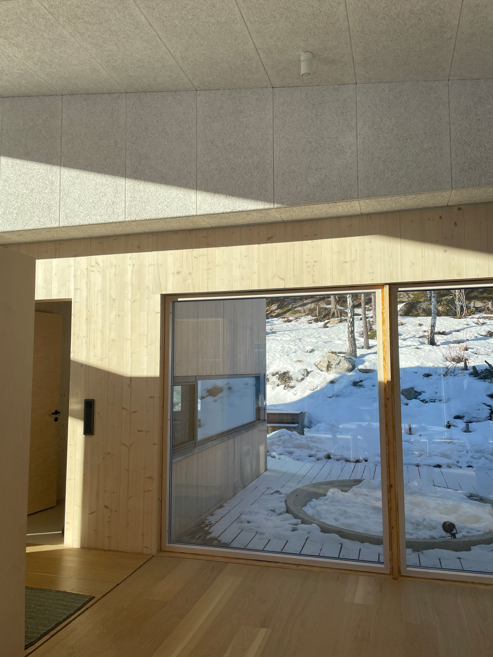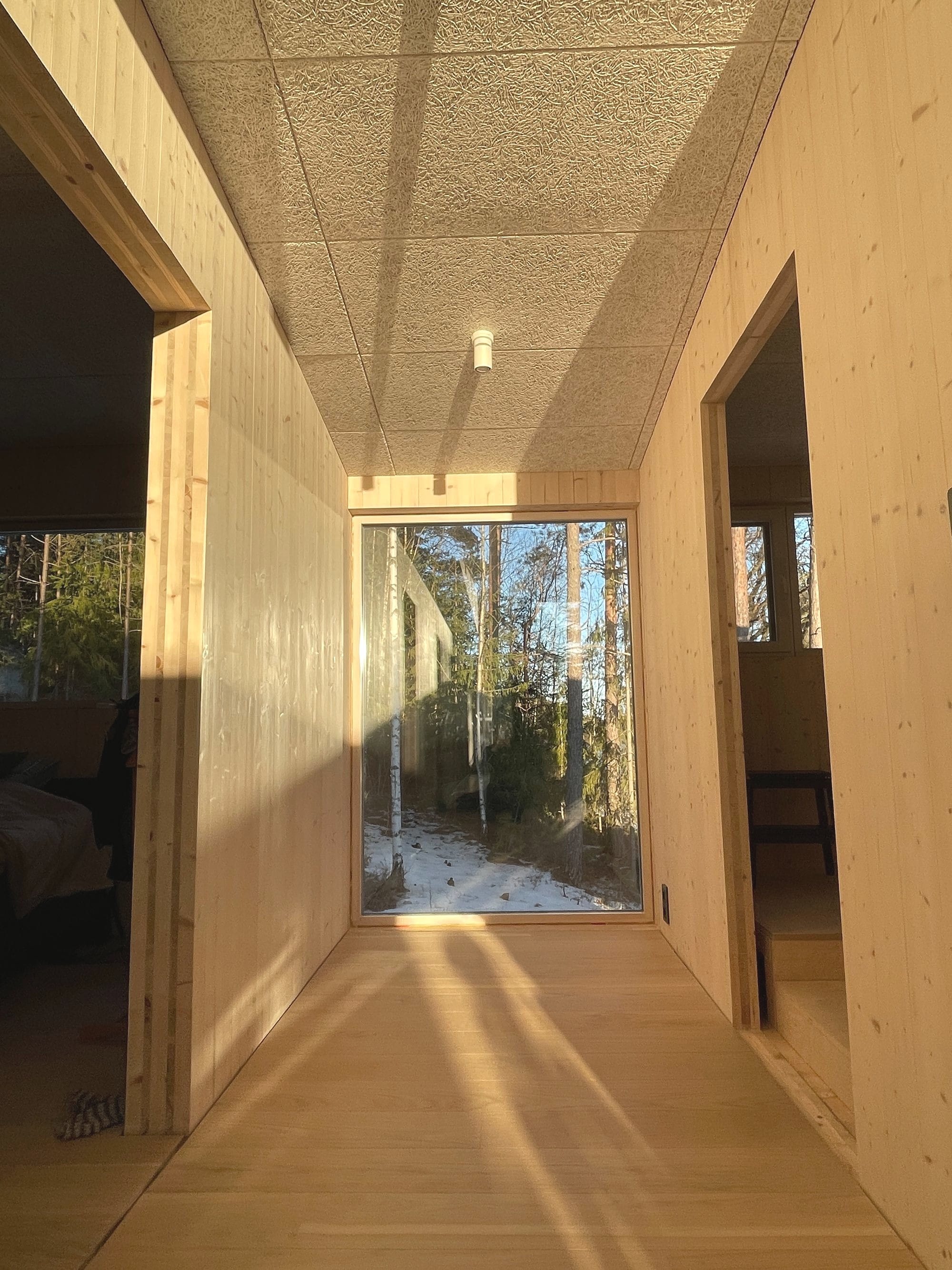 Rakennuksessa pyrittiin siihen, että ulko- ja sisätilat lomittuvat luontevasti, metsäinen maisema on läsnä kaikissa sisätiloissa ja valo kulkee läpi talon vuorokauden ympäri.